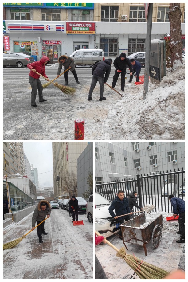 公司黨員志愿者一齊出動,清掃沿街商鋪路面積雪,志愿者們手持推雪板、掃帚等除雪工具,精神抖擻地奔赴公司周邊的積雪路段。盡管天氣寒冷,積雪深厚,但這絲毫沒有影響志愿者們的熱情和干勁。