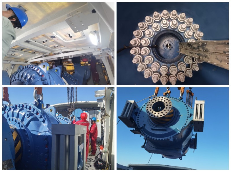 5月正值春季大風(fēng)頻發(fā),這給E2機(jī)組齒輪箱恢復(fù)工作帶來(lái)巨大挑戰(zhàn)。面對(duì)嚴(yán)峻形勢(shì),風(fēng)電場(chǎng)積極應(yīng)對(duì),不斷優(yōu)化工作方案,精心調(diào)整吊裝策略,并成立專項(xiàng)工作小組。面對(duì)時(shí)間緊、任務(wù)重等諸多不利條件,小組人員嚴(yán)陣以待、全力以赴投入到更換工作中。吊裝過(guò)程中,工作人員緊盯風(fēng)速變化,精準(zhǔn)抓住風(fēng)速6米/秒以下的短暫窗口期,爭(zhēng)分奪秒提前拆卸齒輪箱附件。地面與機(jī)艙作業(yè)人員密切配合,嚴(yán)格把控每一個(gè)關(guān)鍵環(huán)節(jié)。從齒輪箱連接油管、傳感器、主軸連接螺栓,到齒輪箱彈性支撐的安裝工藝,每一步操作都細(xì)致入微、嚴(yán)謹(jǐn)規(guī)范。經(jīng)過(guò)運(yùn)維人員12小時(shí)的艱苦奮戰(zhàn),E2齒輪箱吊裝更換工作順利完成。