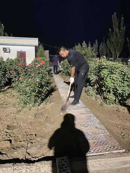 說干就干!大家埋頭忙碌,汗水順著額頭滑落浸透了工裝,泥土伴著動作沾滿了雙手。可當目光落在漸漸成形的路面上時,所有的疲憊都化作了欣慰的笑容——那條曾藏在花壇里的泥濘土埂消失了,取而代之的是一條平整、堅實又美觀的磚石小徑。
