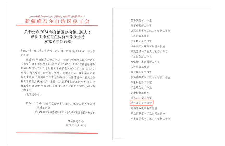 (通訊員 蔣興濤)近日,新疆風能有限責任公司“蔣興濤創(chuàng)新工作室”成功入選2024年自治區(qū)勞模和工匠人才創(chuàng)新工作室扶持對象名單。這一榮譽,既彰顯了公司堅持創(chuàng)新驅(qū)動發(fā)展戰(zhàn)略的顯著成效,更是對工作室全體成員憑借過硬實力深耕創(chuàng)新領域、勇攀技術(shù)高峰的高度肯定。